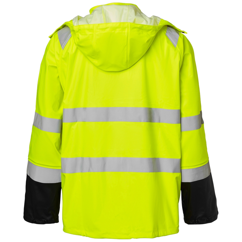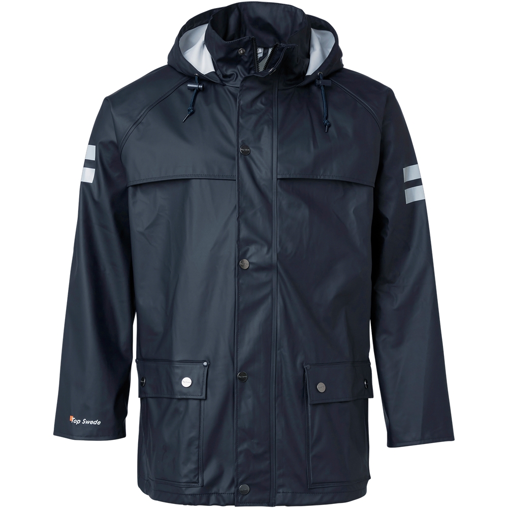 Oppdag Top Swede 180 Rain Jacket Hi-Vis, designet for fagfolk innen bygg og anlegg og industri som trenger maksimal beskyttelse og synlighet i regnvær. Regnjakken er laget av stretchstoff med sveisede sømmer for å sikre at du holder deg tørr selv under de mest utfordrende værforholdene. Jakken har glidelås med stolpelås og trykknapper for ekstra beskyttelse mot fuktighet. Den skjulte ID-kortlommen, den avtakbare hetten med snøring og de to frontlommene med klaff gir praktisk oppbevaring av verktøy og tilbehør. Innerlommen og telefonlommen gir ekstra sikker oppbevaring av personlige eiendeler. Med snøring i nederkant og justerbare mansjetter kan du tilpasse passformen for optimal komfort. Jakkens lengde på 80 cm gir ekstra beskyttelse og dekning. Top Swede 180 Rain Jacket Hi-Vis kombinerer slitestyrke, funksjonalitet og høy synlighet, noe som gjør den ideell til bruk i en lang rekke arbeidsmiljøer der sikkerhet og beskyttelse er avgjørende. – Velg Top Swede for arbeidsklær du kan stole på både på og utenfor jobben.