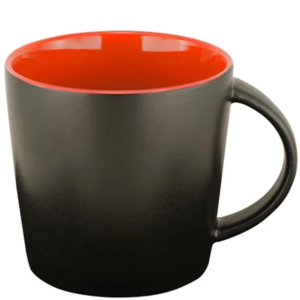 Populært krus med lett koning. Stor dekorflate helt fra bunnen og opp til kanten!  Leveres i flere fargekombinasjoner.