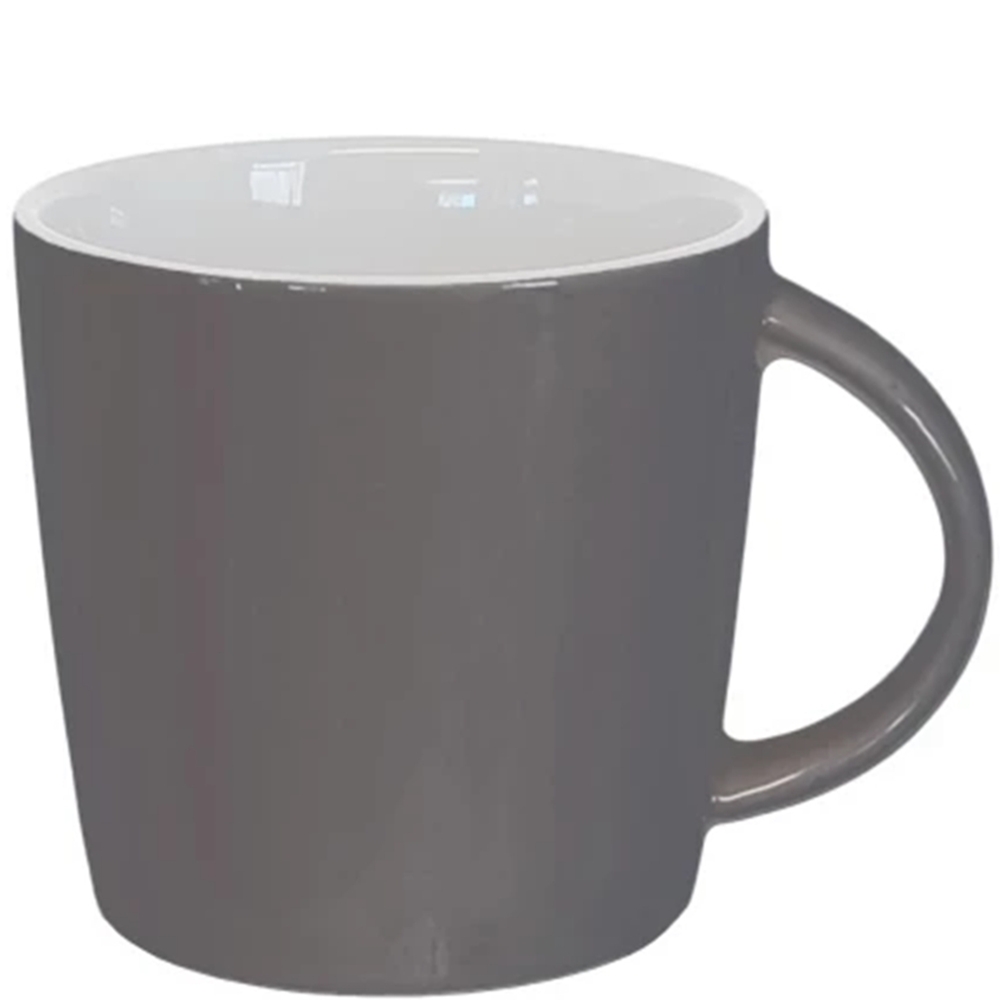 Populært krus med lett koning. Stor dekorflate helt fra bunnen og opp til kanten! Leveres i flere fargekombinasjoner.
