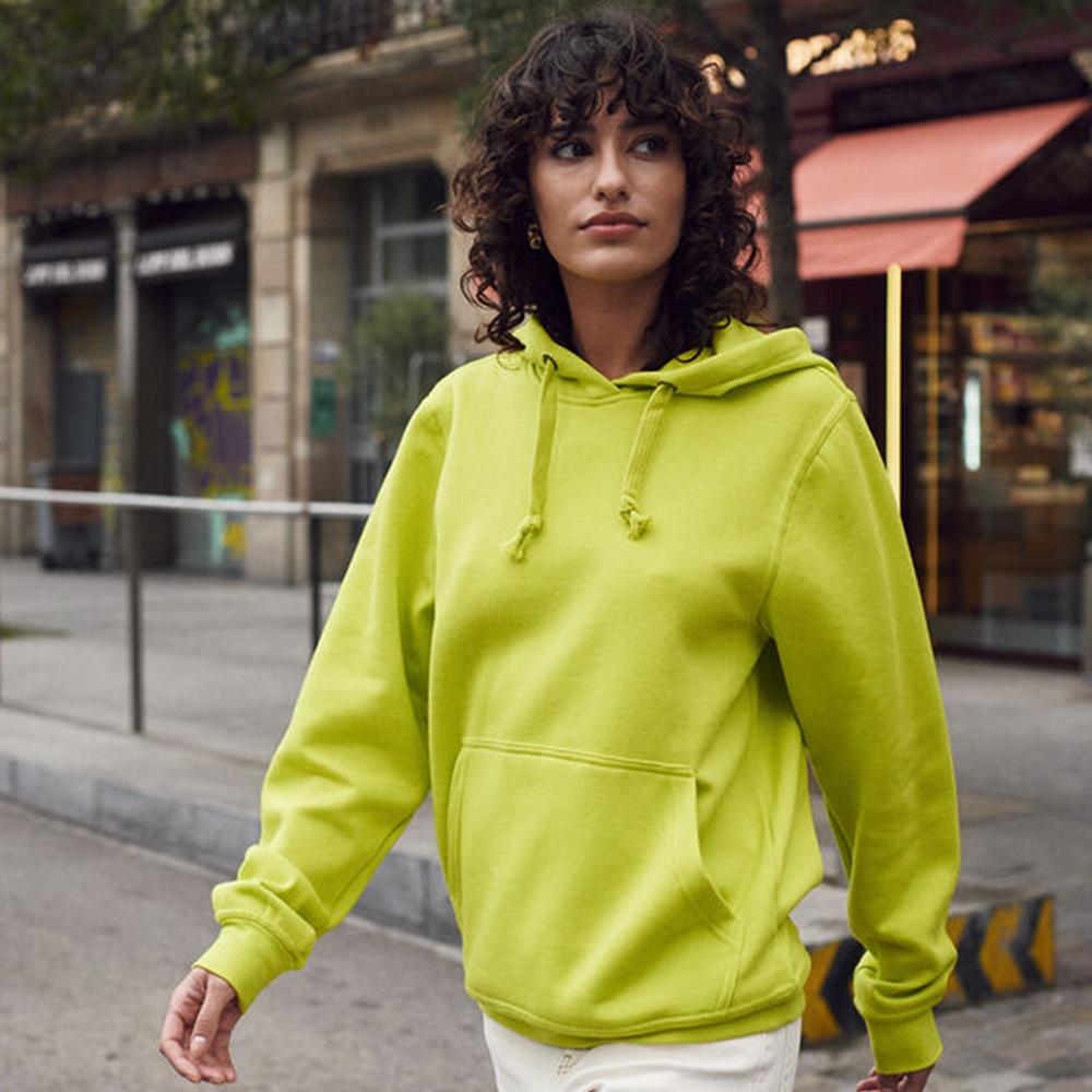 Hettegenser i unisexmodell. Basic Hoody har ribb i mansjett og nederkant, børstet innside og snor i hetten. Kengurulomme med praktisk løsning for mobiltelefon..