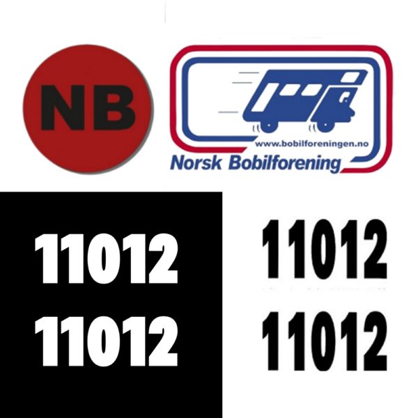 2 stk medlemsnummer i Sort eller hvit Folie til å klistre på bobilen. Etikettens størrelse: 18×10 cm. Hvert klistremerke med tall måler: 18×5 cm. (BxH)