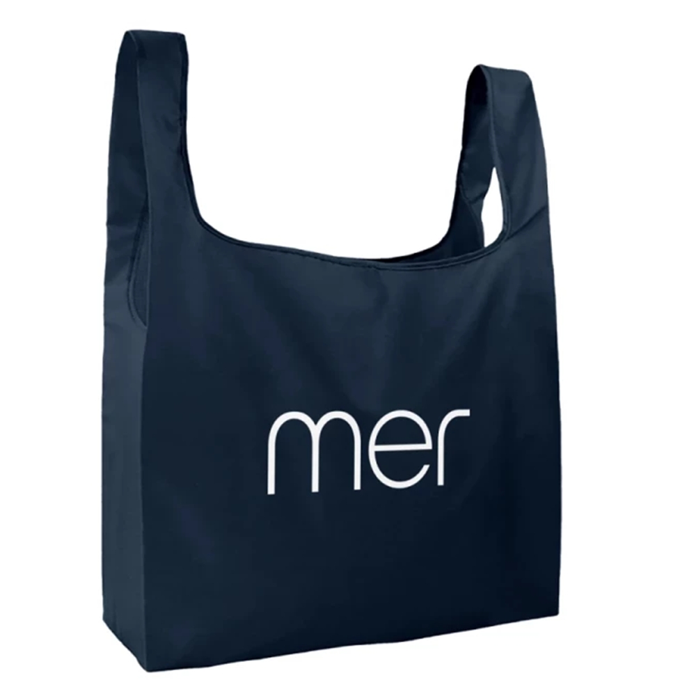 STORT handlenett i polyester INKL hvitt/svart/grått trykk. Stort og solid nett i polyester som pakkes sammen i egen lomme. Lommen henger fast på innsiden når det er i bruk.