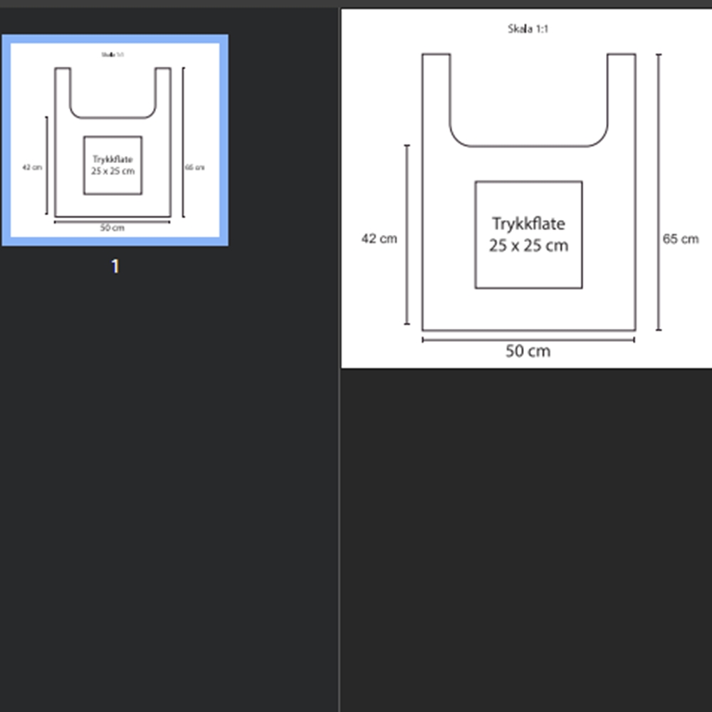 Logo på 1 side er inkludert i hvitt/svart/grått trykk, tillegg for 2 sider og trykk på selve lommen. Størrelse: 40x50xcm uten håndtak, 40×60 cm med håndtak.