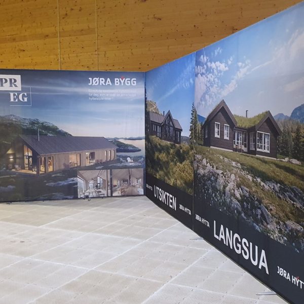 Fordelene med stoff/tekstiltrykk er mange; lav vekt under transport, rask, enkel sømløs montering.