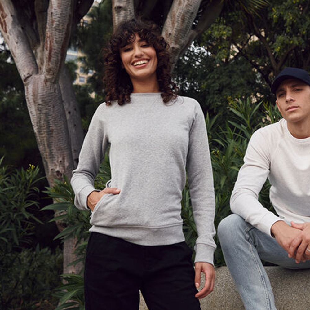 Vår fineste sweatshirt i en økologisk bomull og resirkulert polyesterblanding. Dekorativ ermavslutning og nedekant med raglansøm for et moderne utseende. Skjult sidelomme med glidelås. CVC french terry, herringbone nakkebånd og ribb i nedekant og ermavslutning. Elastisk ribb i 1×1. Tilpasset for hodetelefoner.
