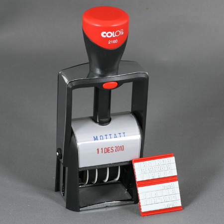 Hendig selvfargende stempel med innebygget stempelpute for beste tilpasning til teksten.