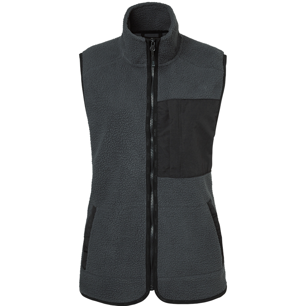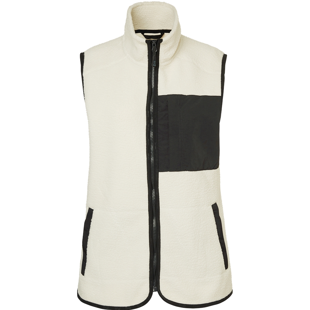 Vesten i sherpafleece har en tettsittende dampform med myk innside og luftig utside. Utstyrt med to sidelommer, passpoallommer og en brystlomme med glidelås. Svarte vevde paneler, avrundet bakkant og diskret SW-bånd i enden av plagget.